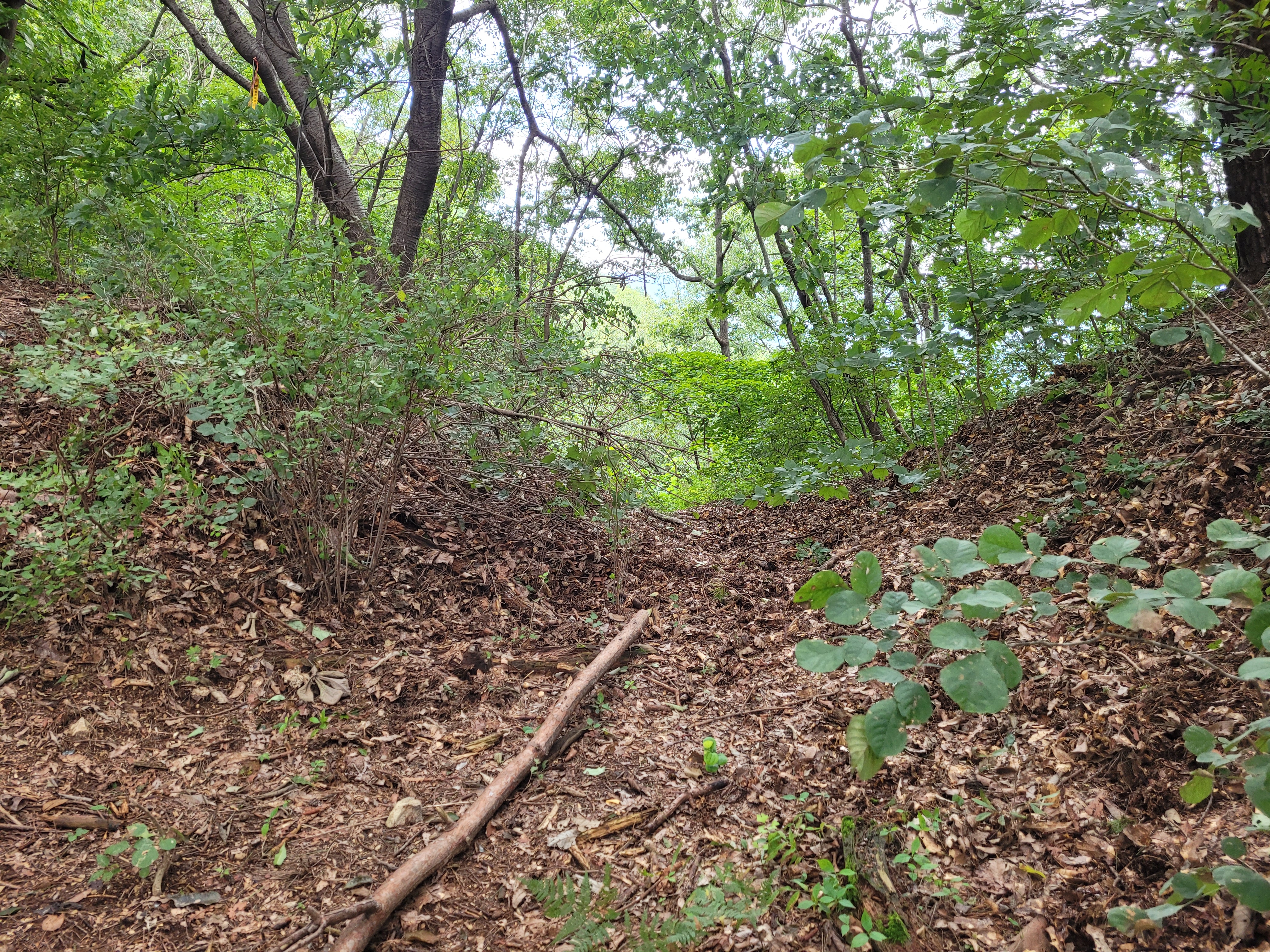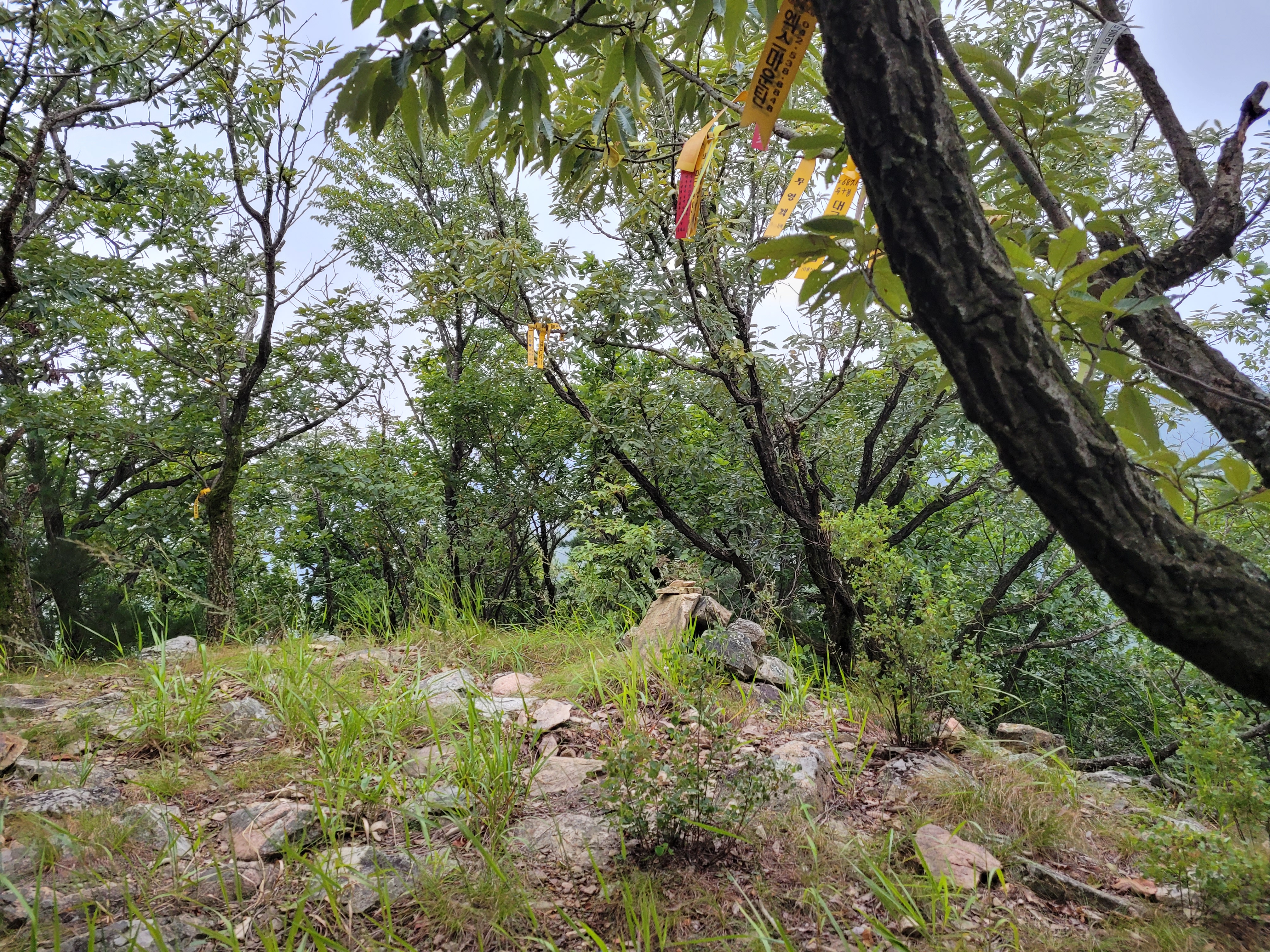 고갯마루에서 좌측 표지기를 따라 산으로 들어간다. 초입에는 잡목이 있지만 조금만 올라가면 등로가 양호해진다. 긴 오름길이다.
