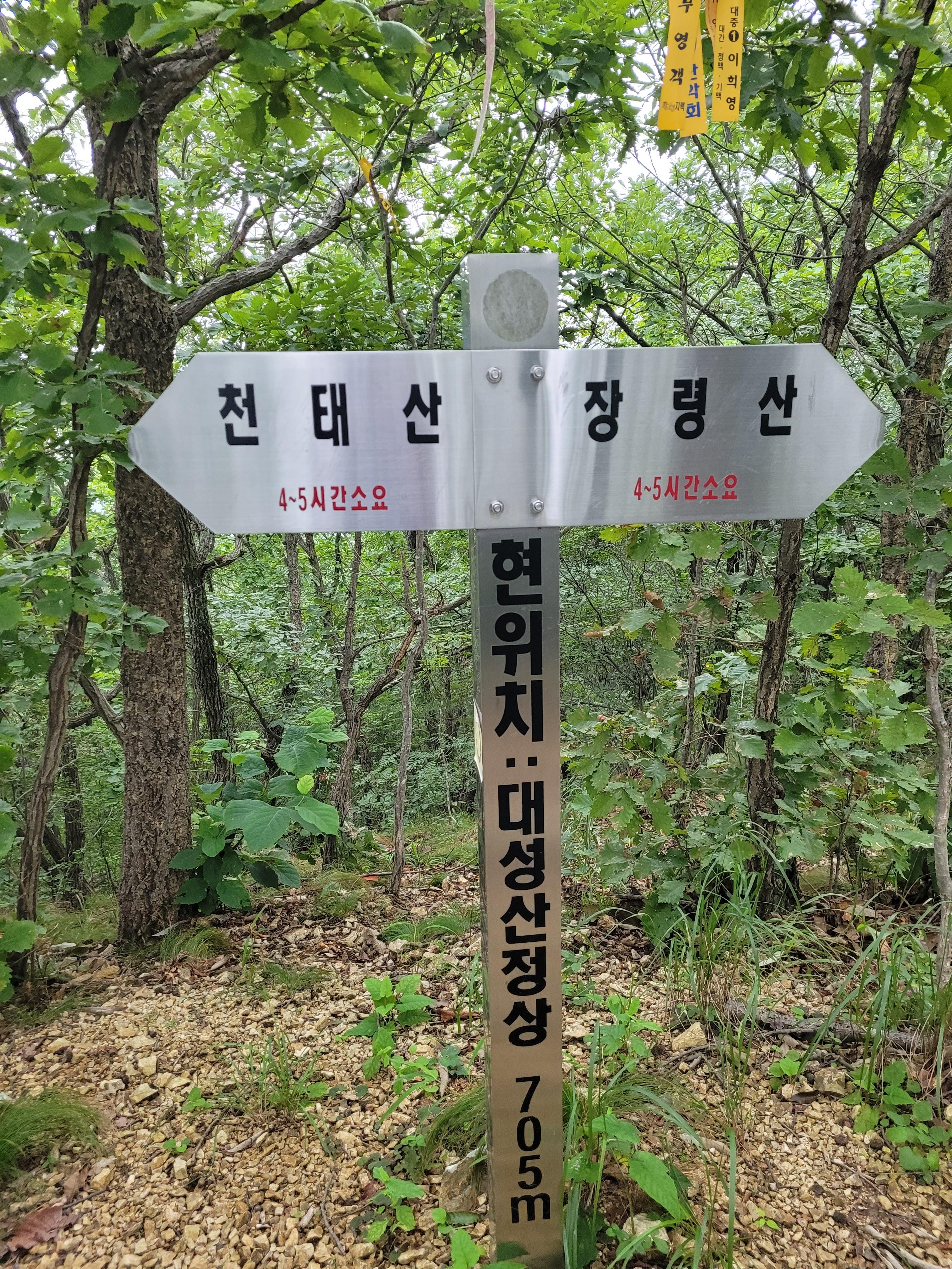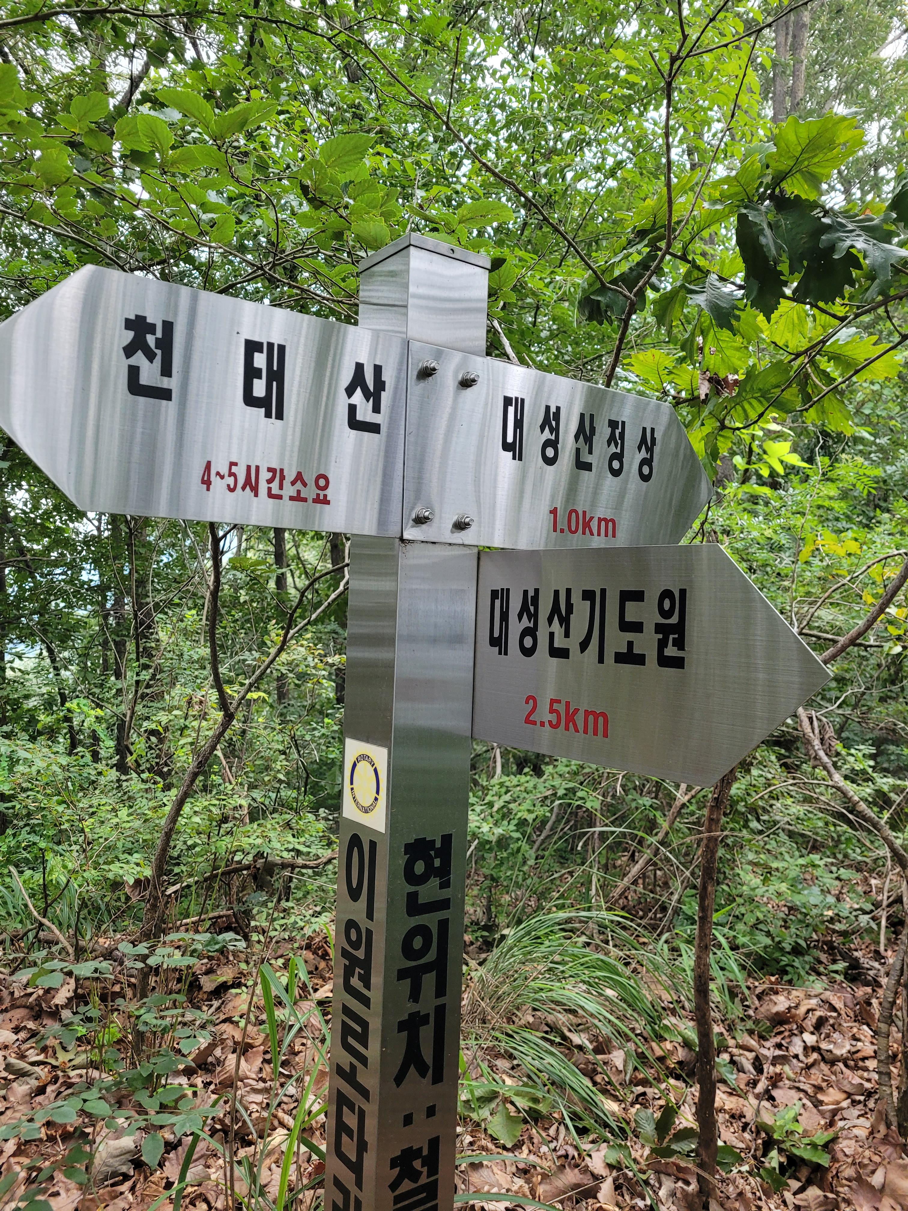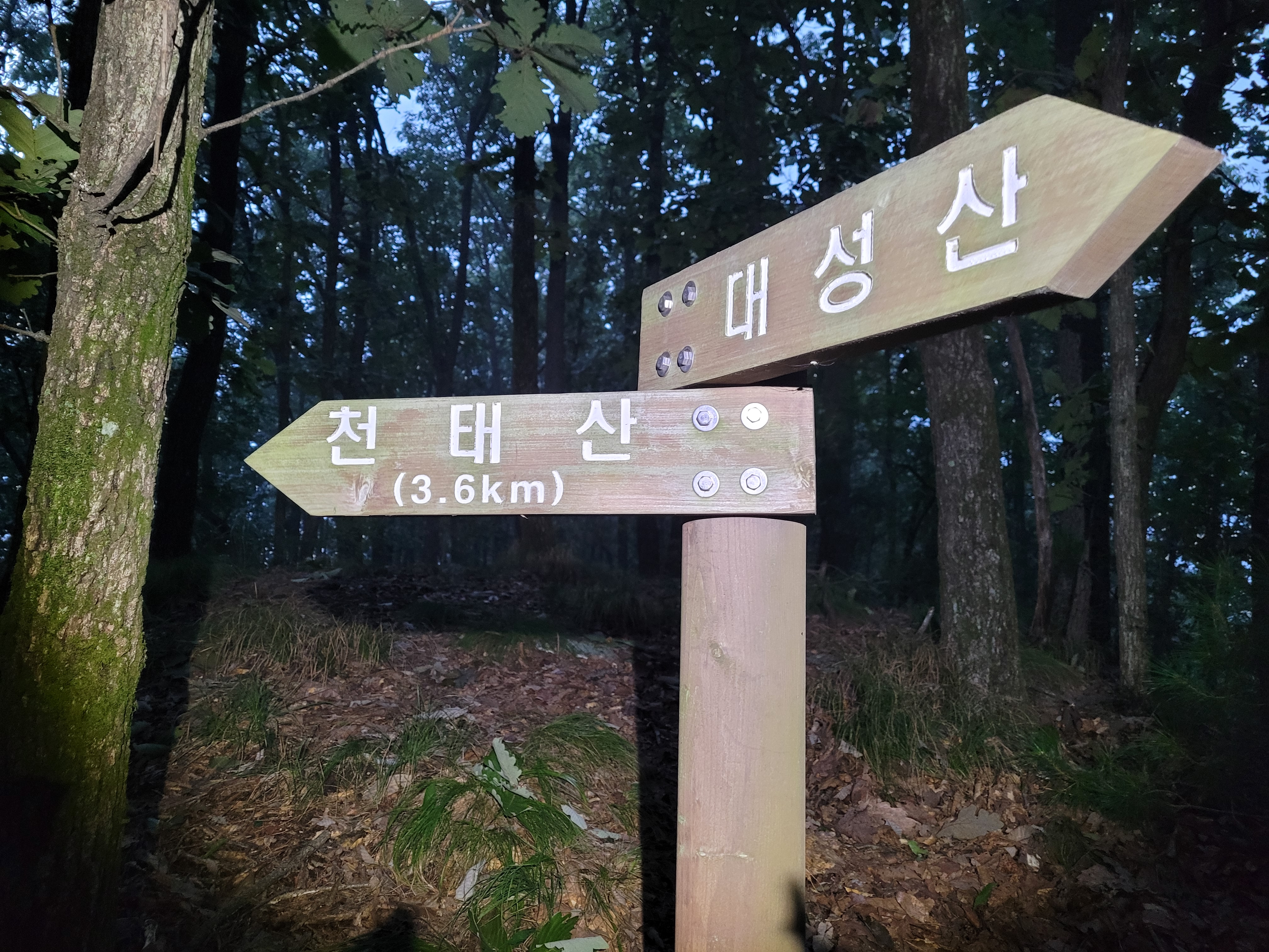 이정표가 있다. 천태산과 방금 올라온 길인 서대산 가는길