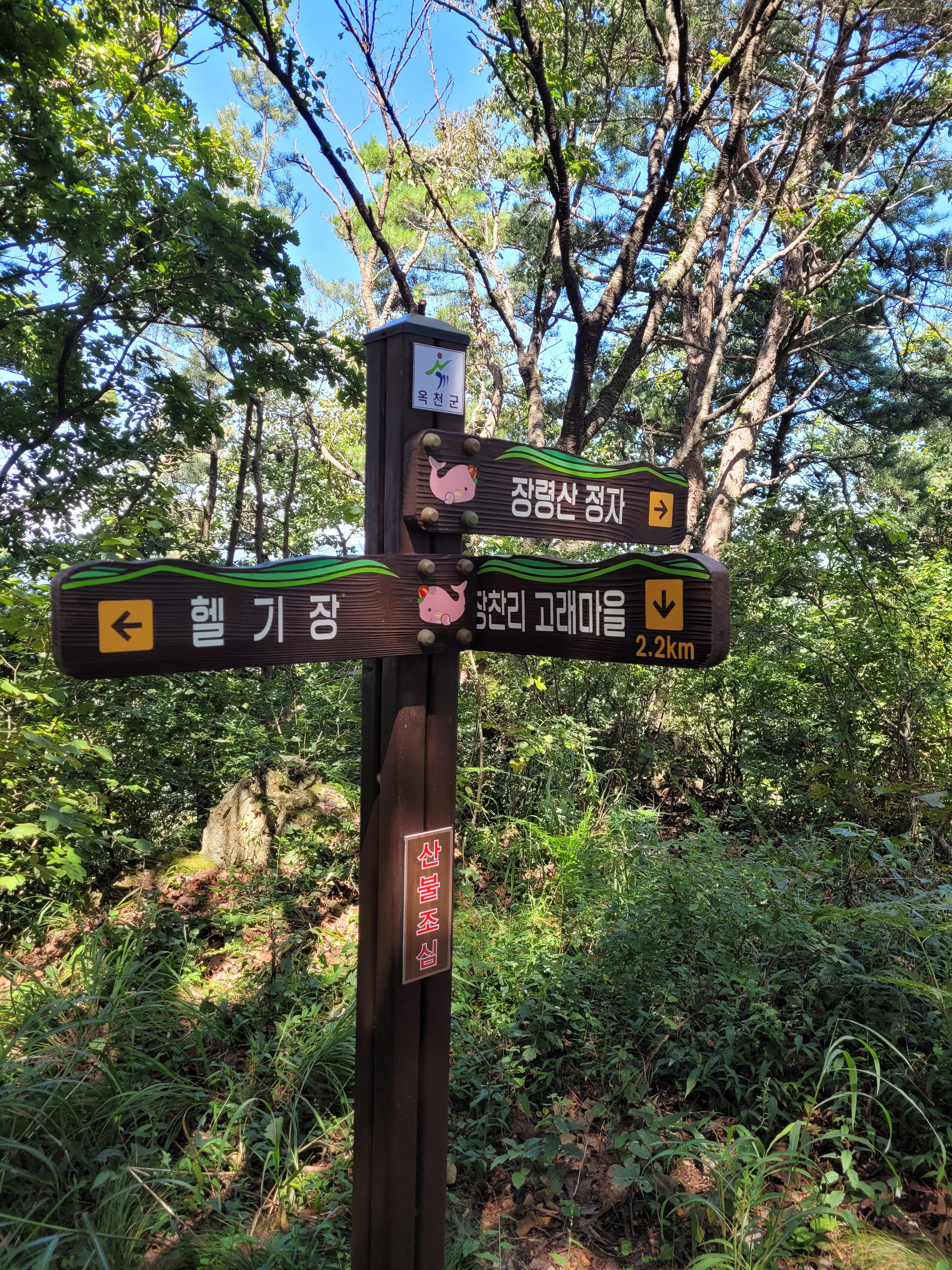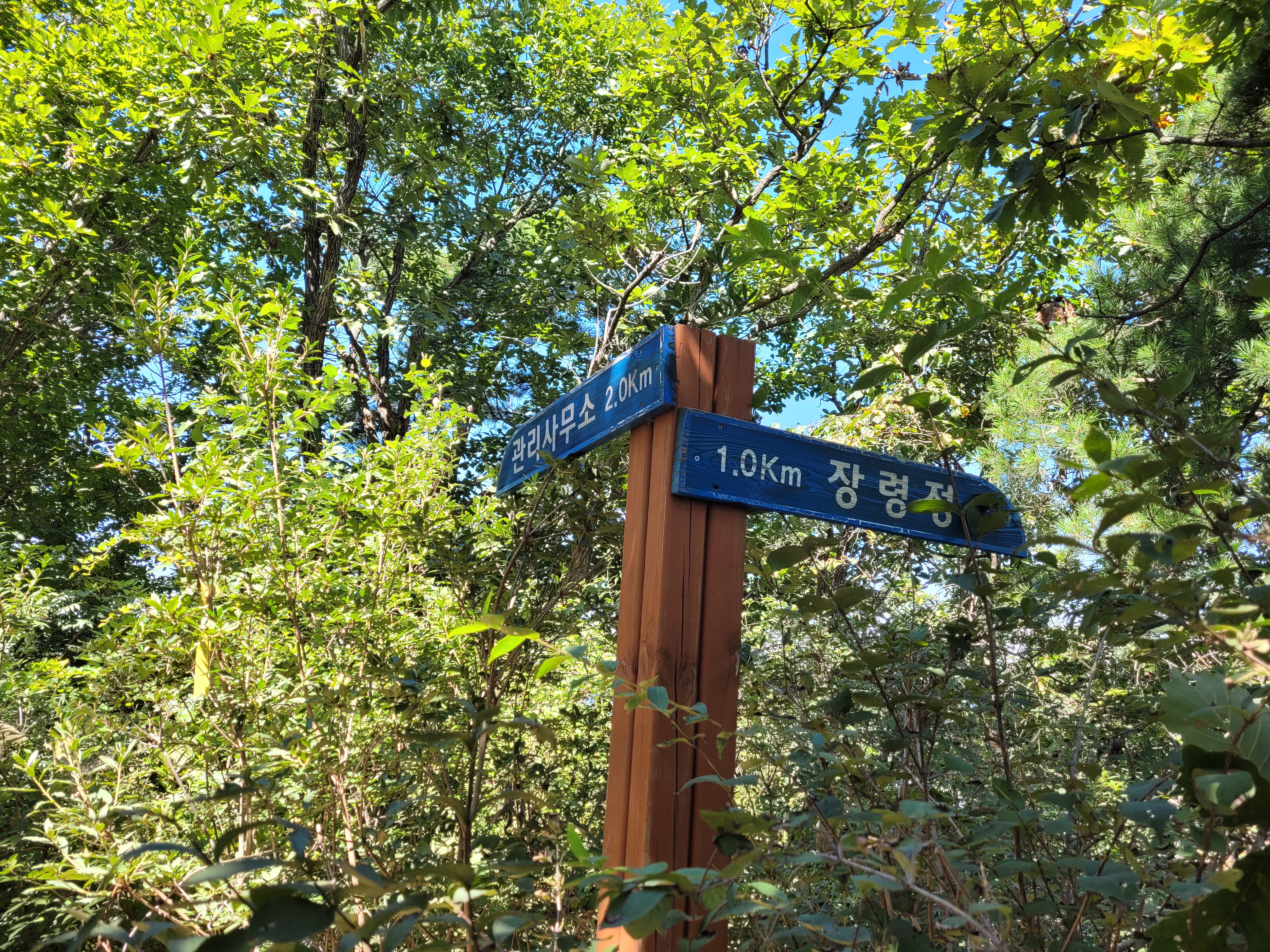 만나는 이정표에서 장찬리 고래마을로 급경사길을 내려가다가 좌측으로 꺽어 맥길을 따라 진행하는데, 오래전에 산불이 난 지역을 통과할 때에는 잡목이 성가시게 한다.