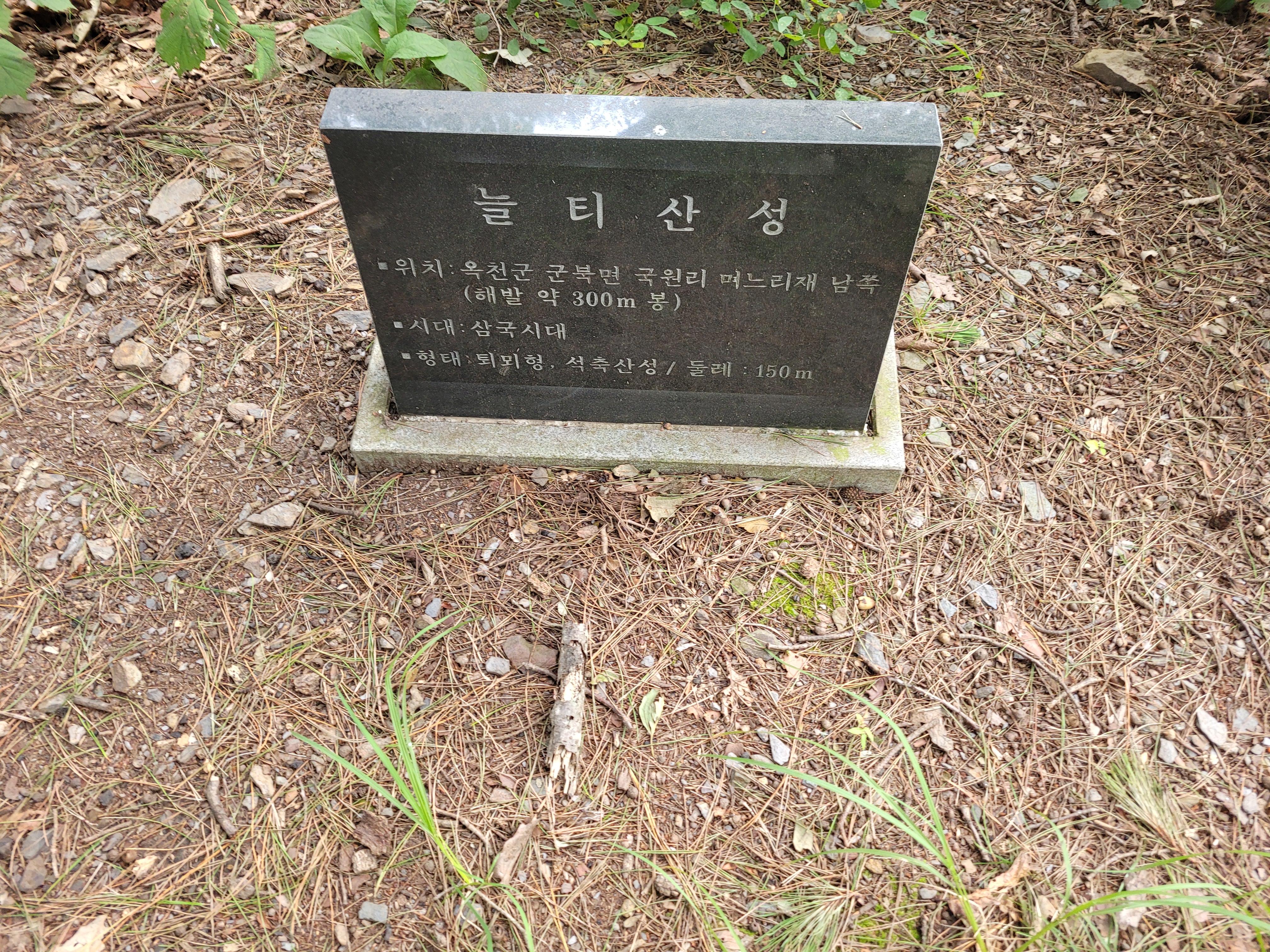 늘티산성 표석이 있다. 되돌아 나와서 우측으로 꺽어가야 하는데, 좌측으로 길을 찾으니 길이 보이지 않아 잠시 헤메기도 했다.