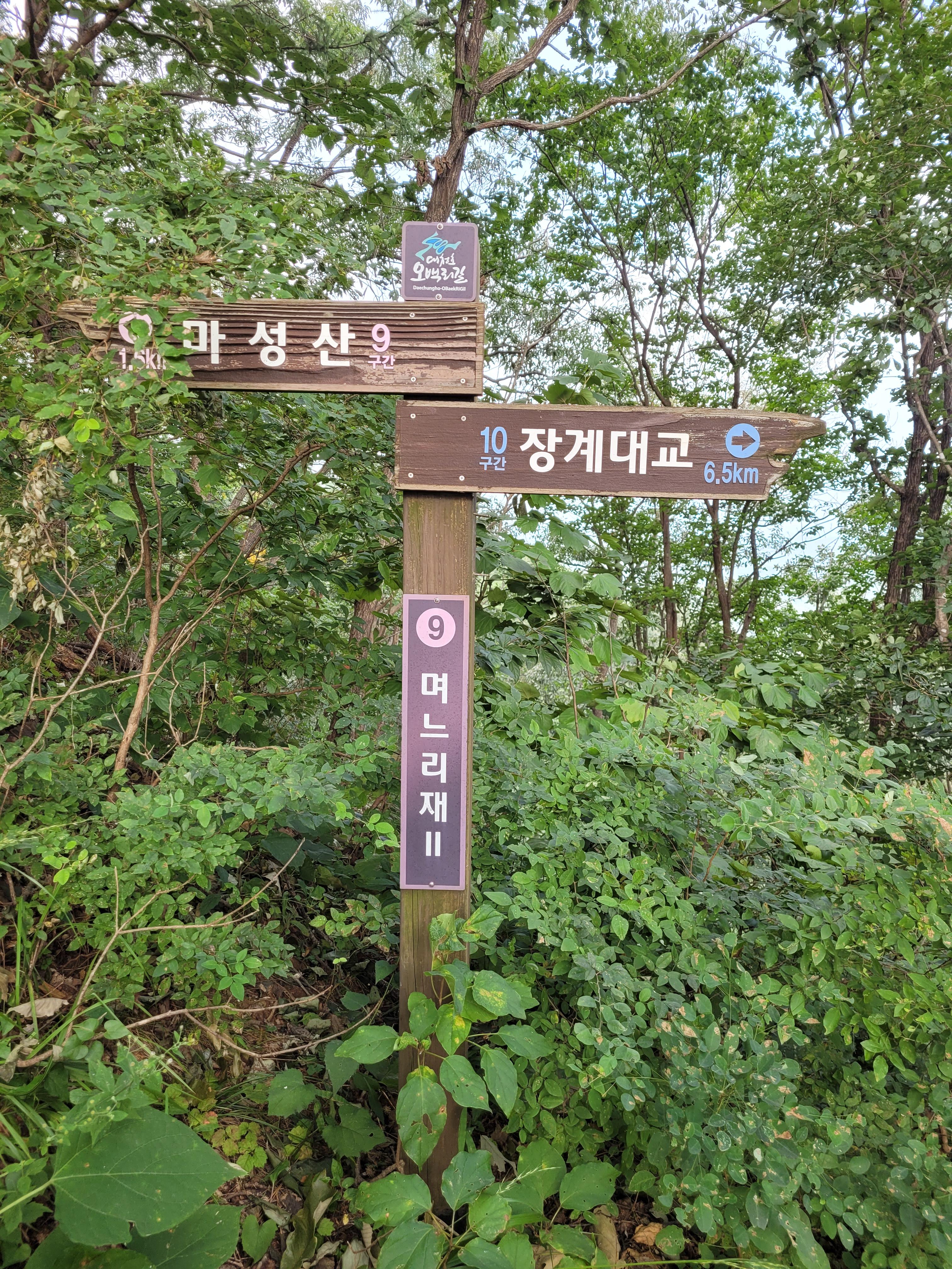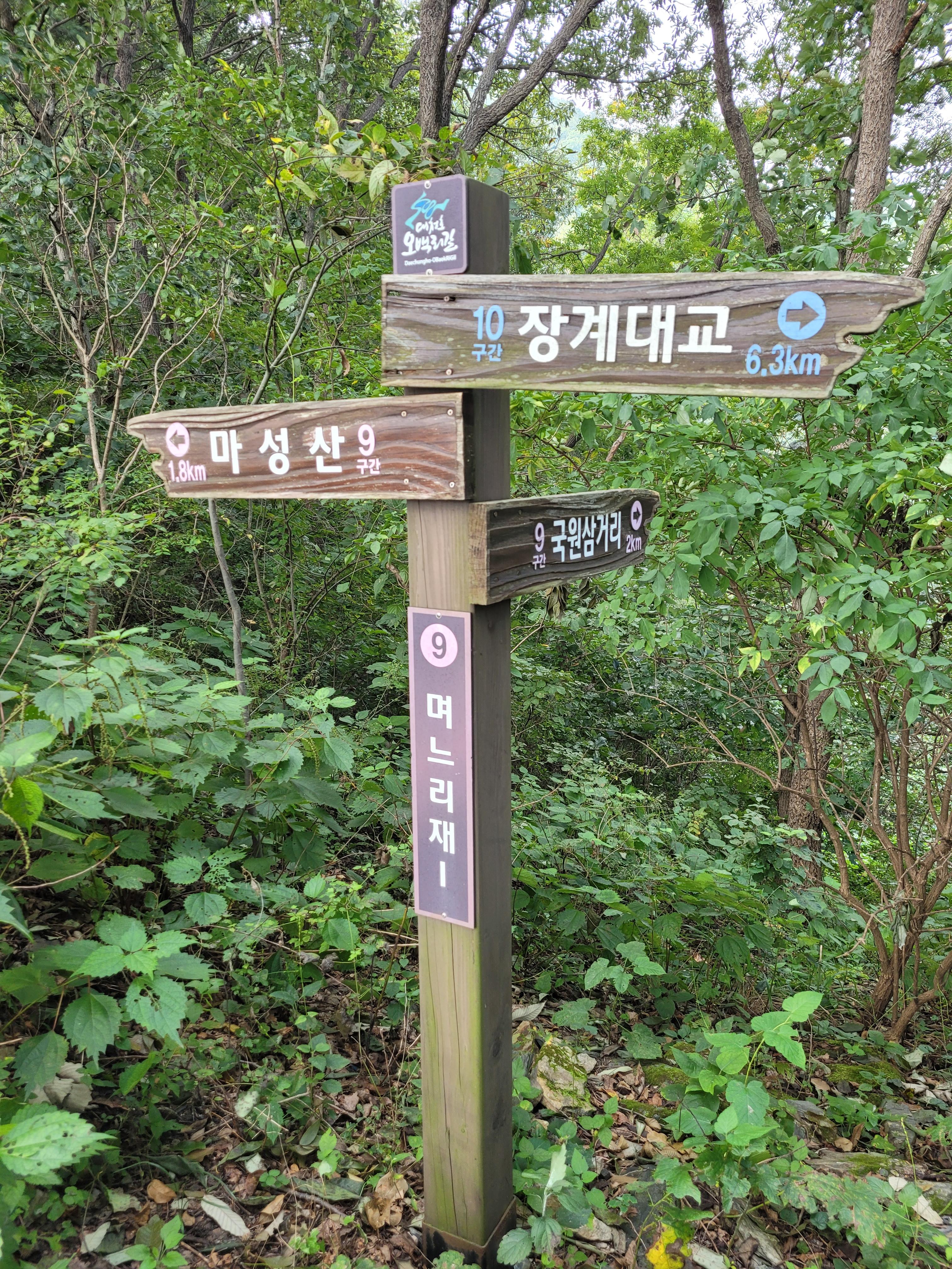 며느리재 이정표가 2개다. 그리고 이정표에도 2와