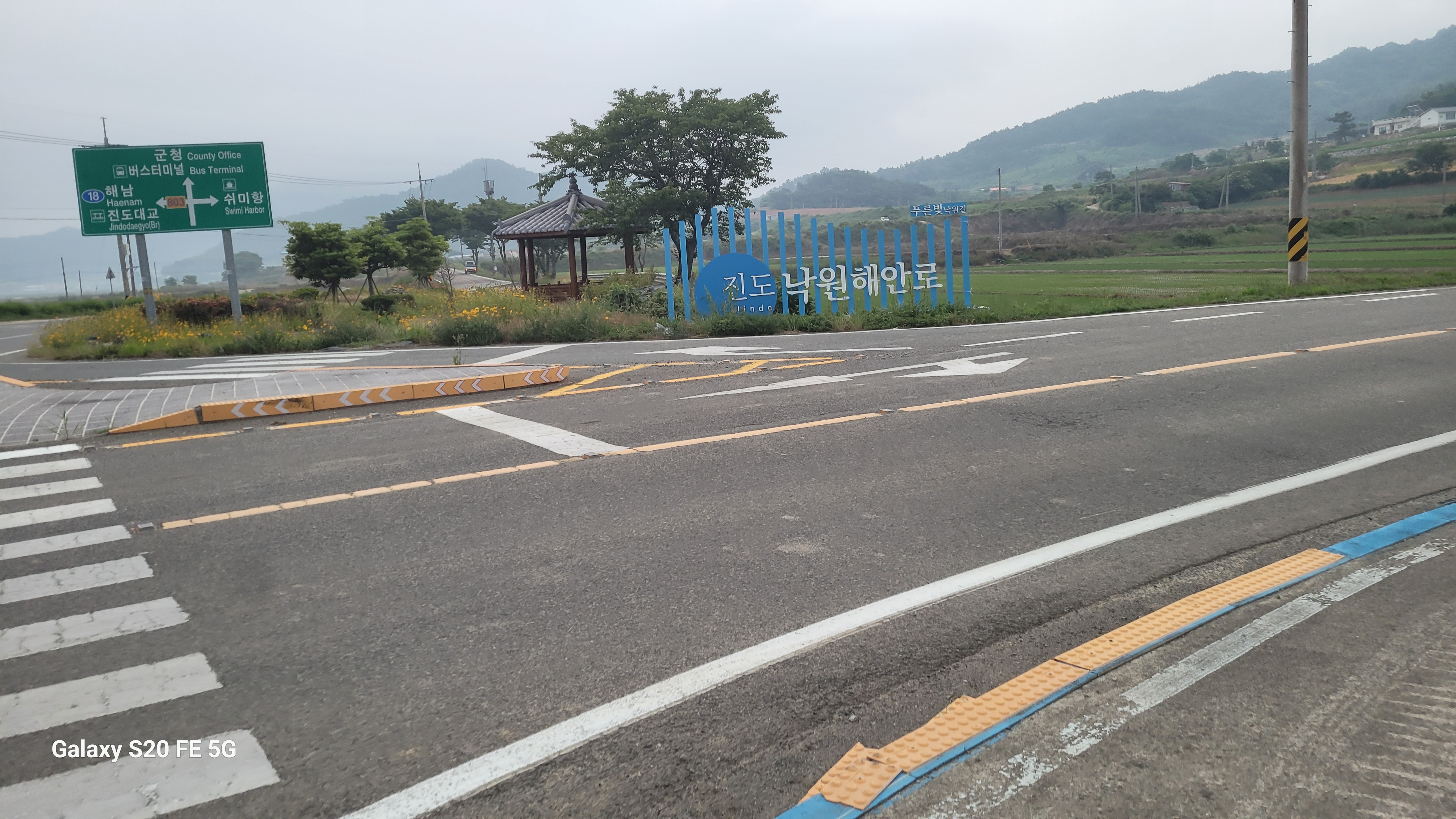 보도가 쉬미항까지 연결된다. 그리고 이 도로가 진도 일주도로이다. 표지판을 보니,