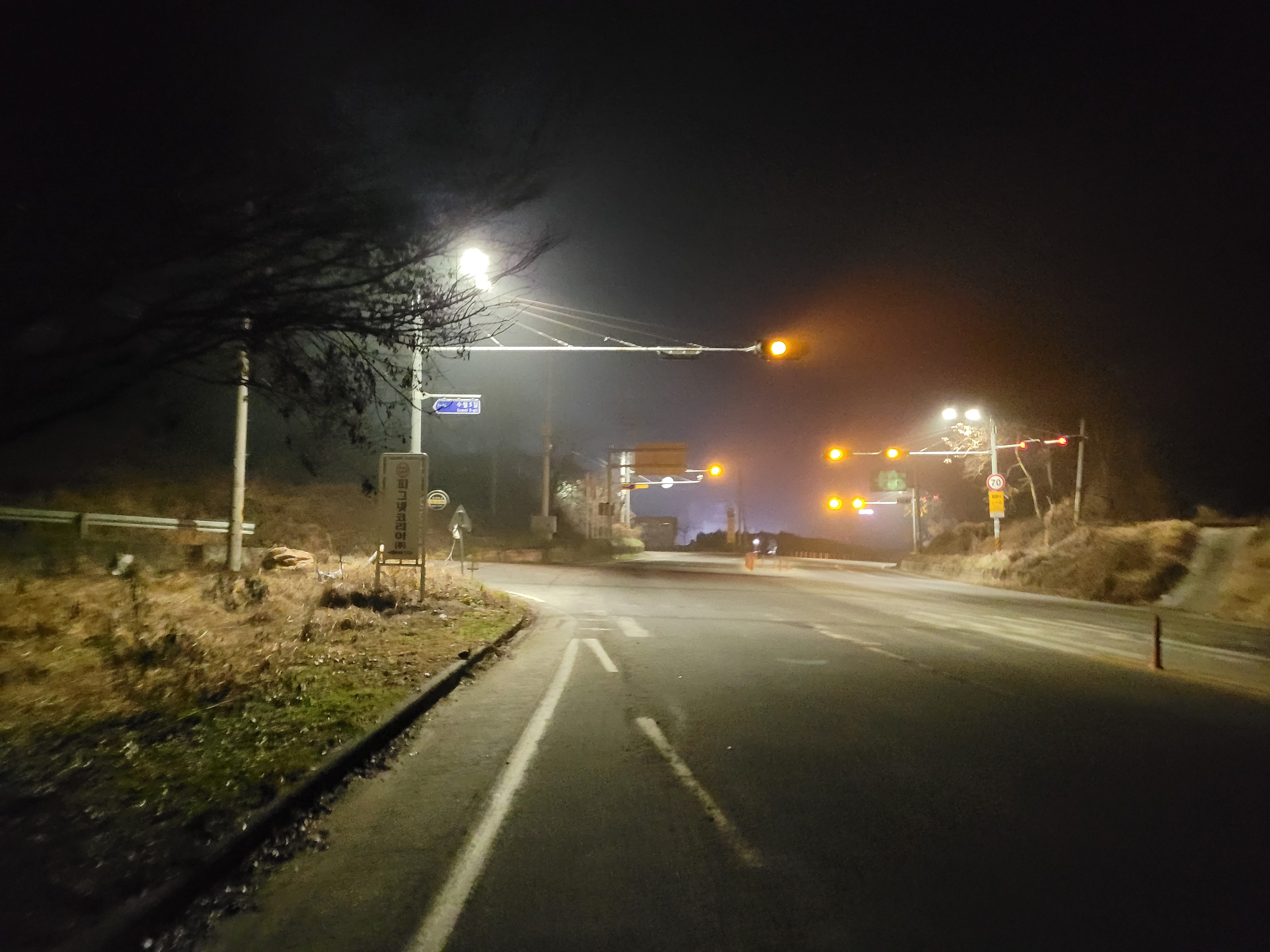 못고개의 야경을 사진에 담고, 도로를 따라 이동하여 맥길로 들어선다. 초입에 잡목이 많다. 어둠을 뚧고 산행을 한다고 잠깐 알바도 하고, 한시간 반정도를 랜턴에 의존하면서 산행을 한다.