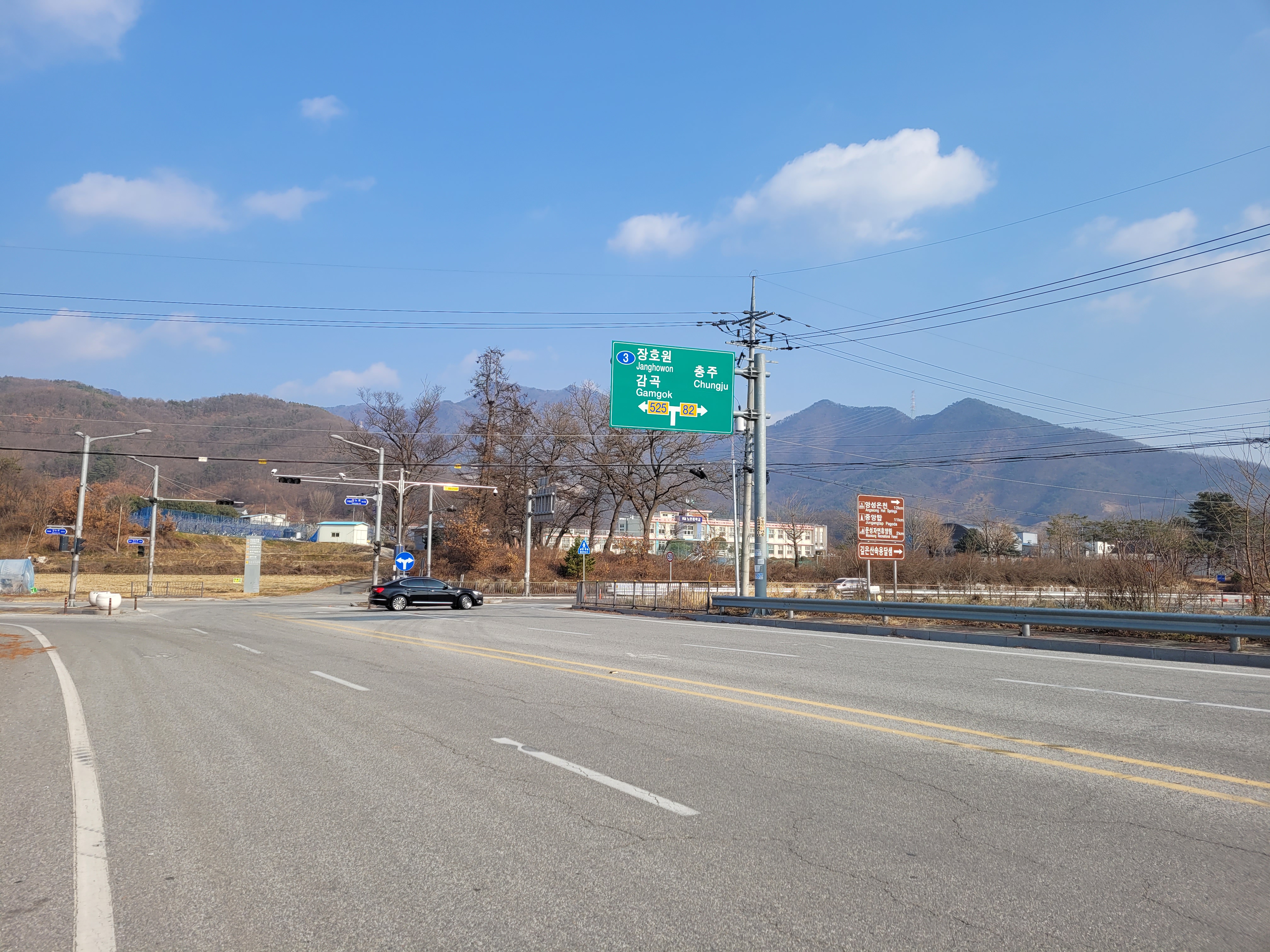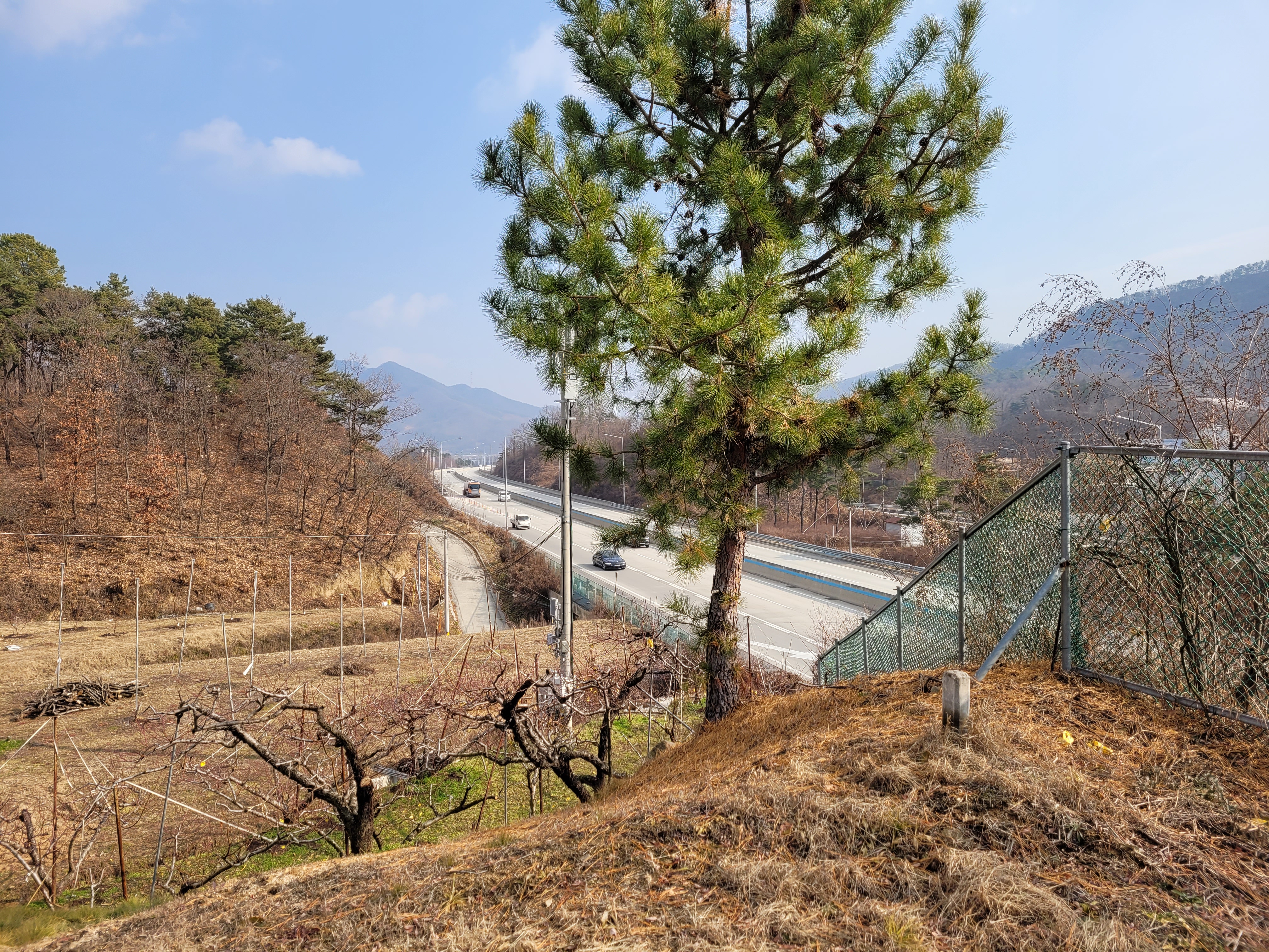 평택제천 고속도로 절개지를 따라 내려와 복숭아 밭을 경유하여