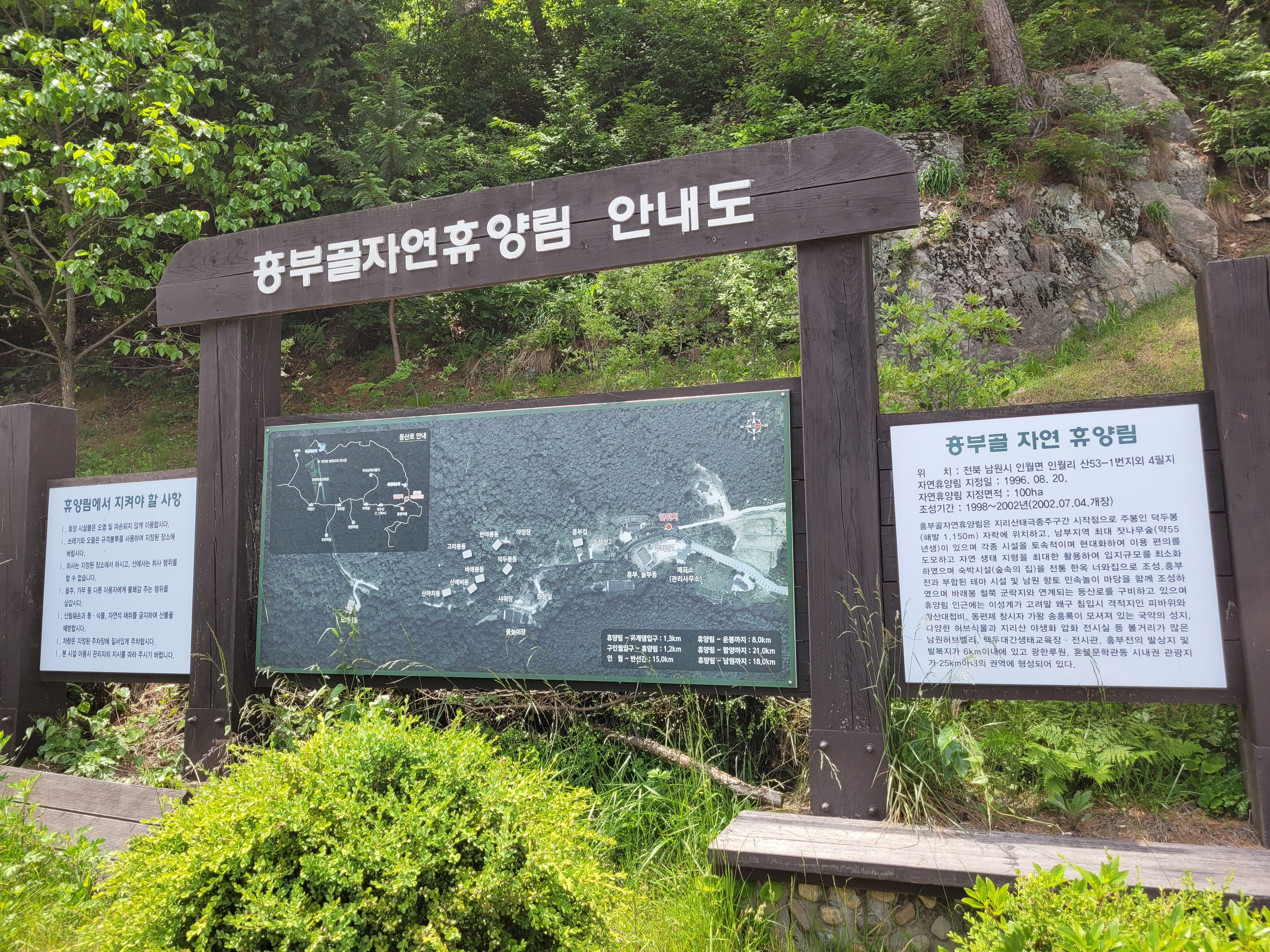 흥부골자연휴양림을 지난다. 흥부골은 인근 아양면에 위치하고 있다. 연비지맥을 종주하면서 지나간 기억이 난다. 한 여름에...