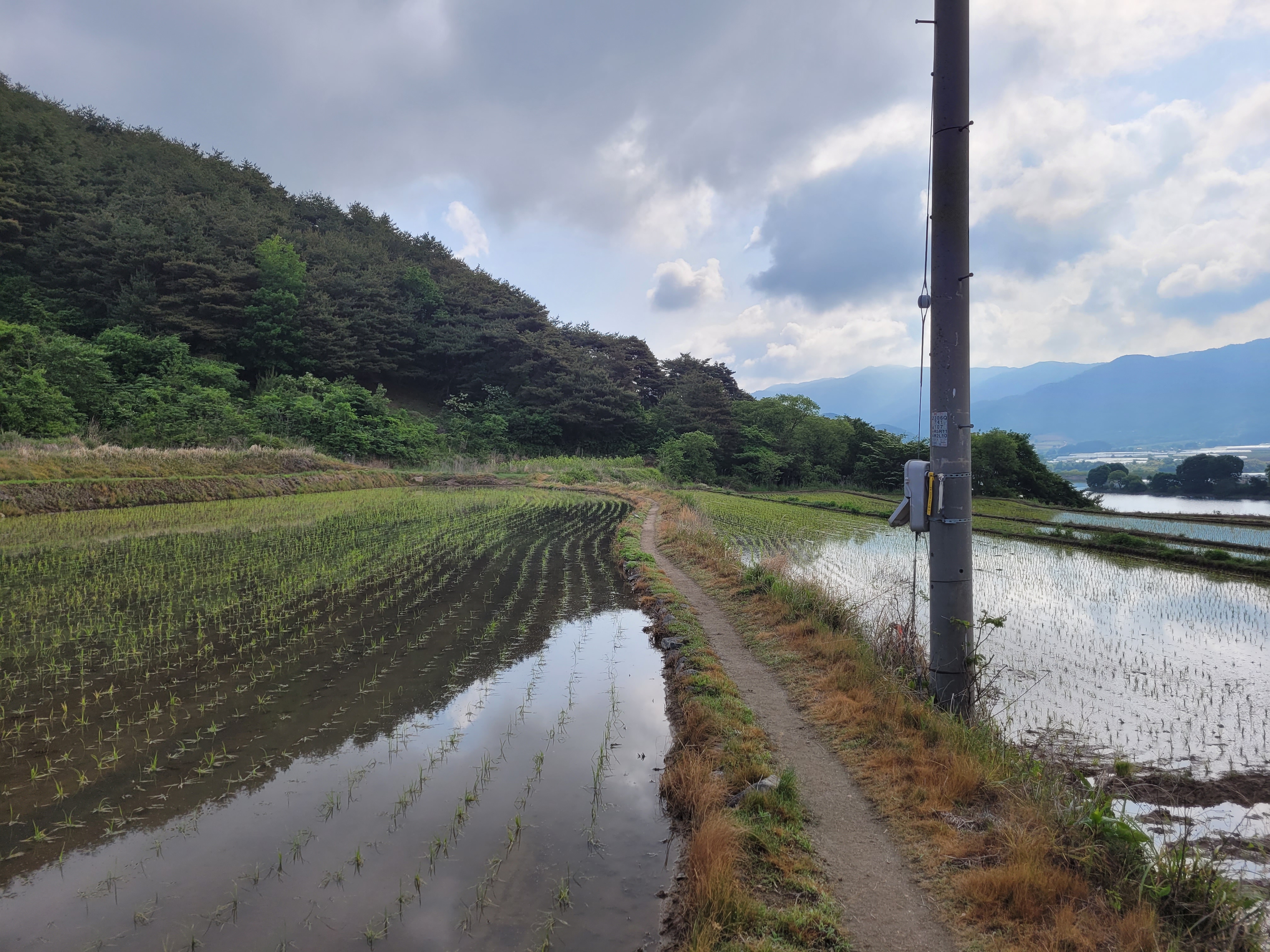 산길을 넘어와 소나무 아래 의자에 앉아 덕치마을을 사진에 담아본다. 나그네가 보기엔 목가적이지만 저 속에 사는분들은 치열하게 하루를 살아가고 있겠지... 그러나 내 눈엔 낭만적이고 목가적이다.